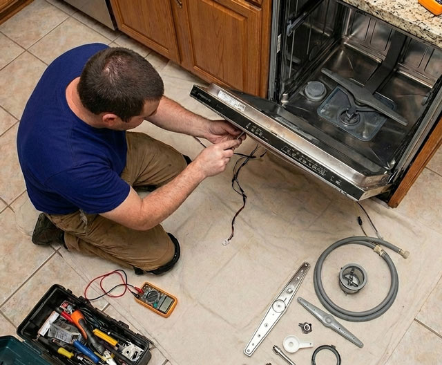 Most dishwashers run reliably for years with basic homeowner maintenance, but a professional inspection every 3–5 years — or at the first sign of trouble — can catch small issues before they become big problems.