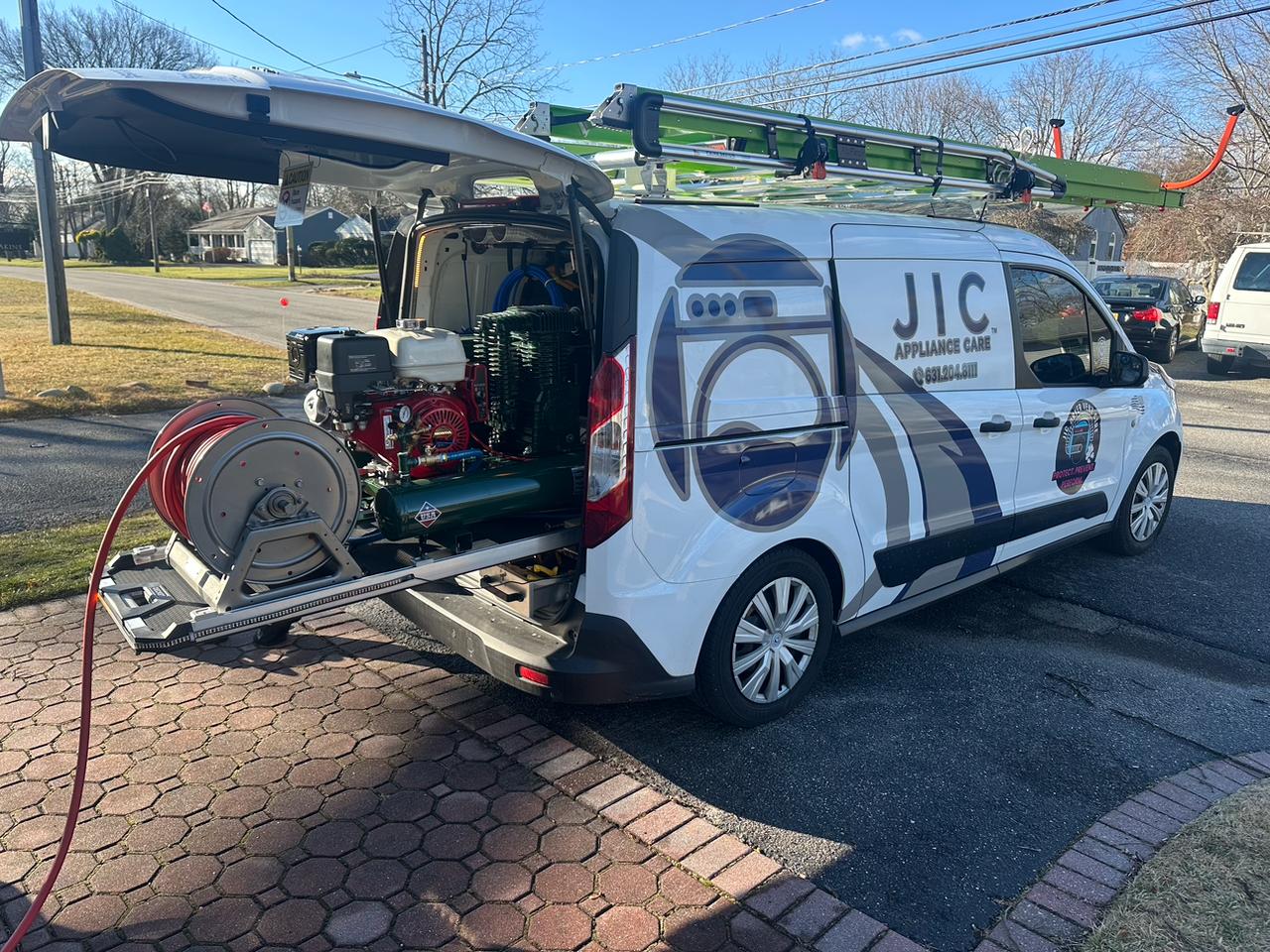 At JIC Dryer Vent Repair, we use a professional truck-mounted high-pressure lint extraction system that delivers superior cleaning power far beyond standard portable tools. This high-performance equipment generates strong suction to remove built-up lint, debris, and blockages from the entire length of your dryer vent — even in long or complex runs. The result is a thoroughly clean vent, improved dryer efficiency, shorter drying times, and significantly reduced fire risk. Homeowners notice the difference immediately, and it’s why our cleanings meet the highest safety and performance standards.
